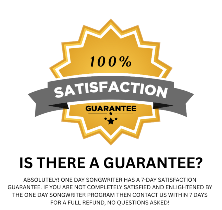 DISCLAIMER: The creative outcomes referenced on this page—including writing a song in a single day—are based on real student experiences and personal case studies. Please understand that while many students finish a song using the One Day Songwriter method, results may vary. Your experience will depend on a variety of factors, including your emotional readiness, time commitment, and personal effort.